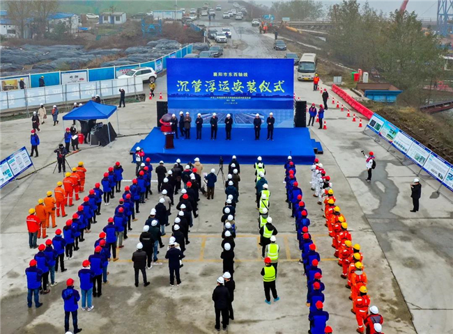 12月12日,由中交二航局投資建設(shè)的三千里漢江上首條沉管隧道——湖北襄陽東西軸線沉管開始浮運(yùn)安裝,古城襄陽再現(xiàn)“大國建造”。襄陽市副市長何飛,襄陽市住建局黨組書記、局長汪厚安,中交二航局黨委委員、副總經(jīng)理吳迅等出席浮運(yùn)安裝儀式。