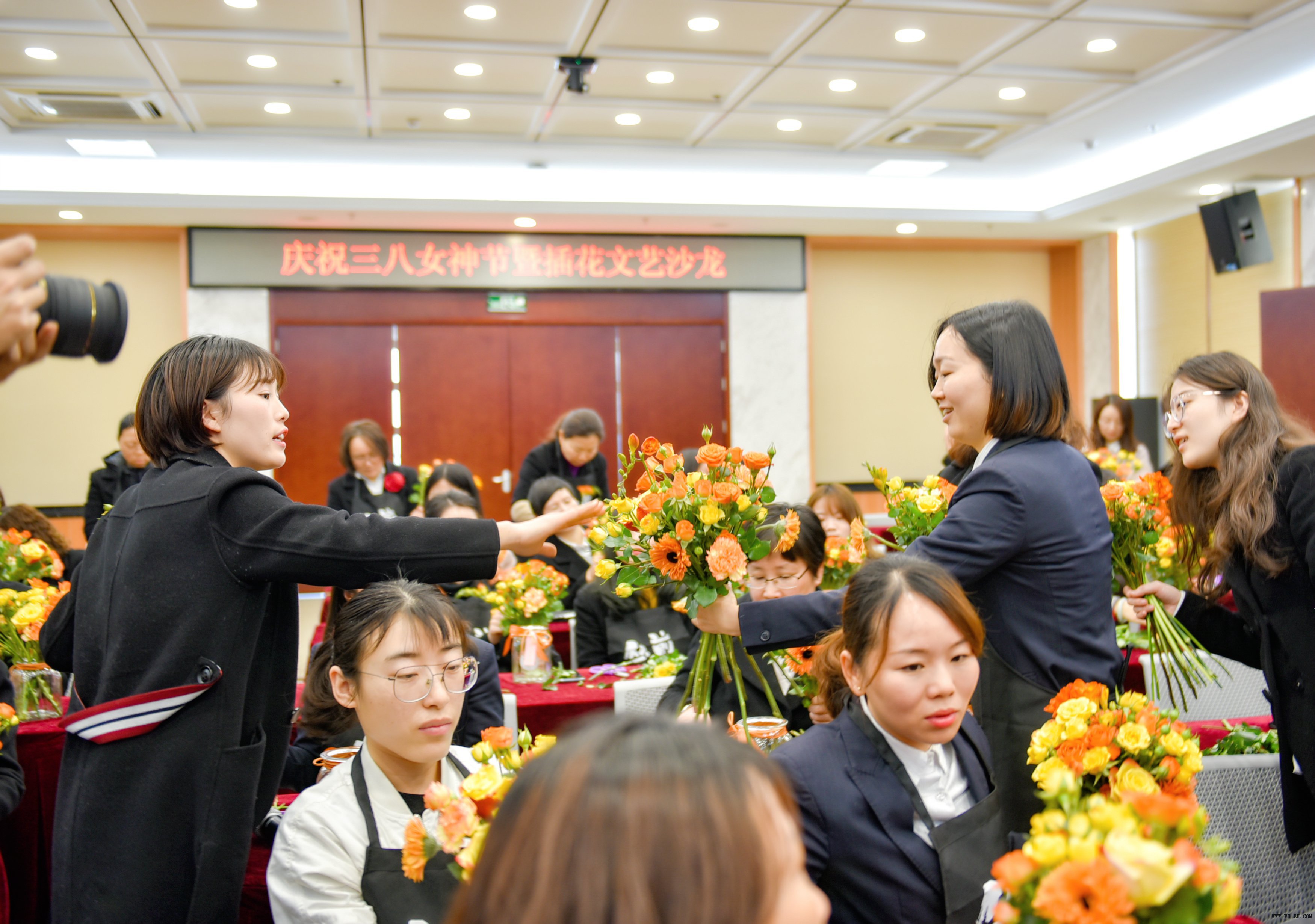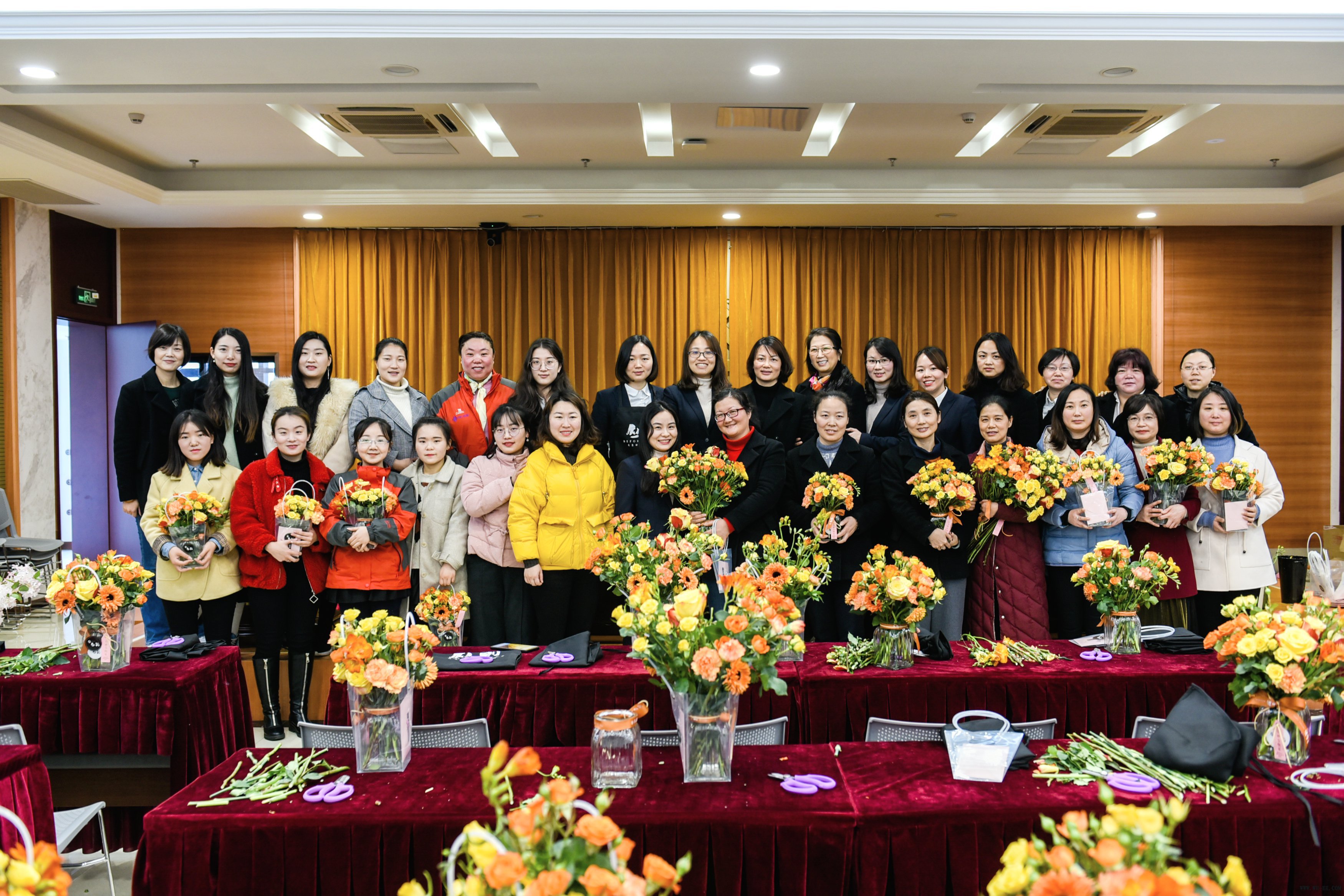 本次活動由公司工會組織主辦,活動參與人數約90人,包括了在蕪單位的女性職工。女神們熱情高漲,活動還未開始,便早早地來到現場做準備。插花是一門藝術,需要根據一定的構思配合合適的花材完成一個優(yōu)美的造型,借此表達一種主題,傳遞一種感情和情趣。