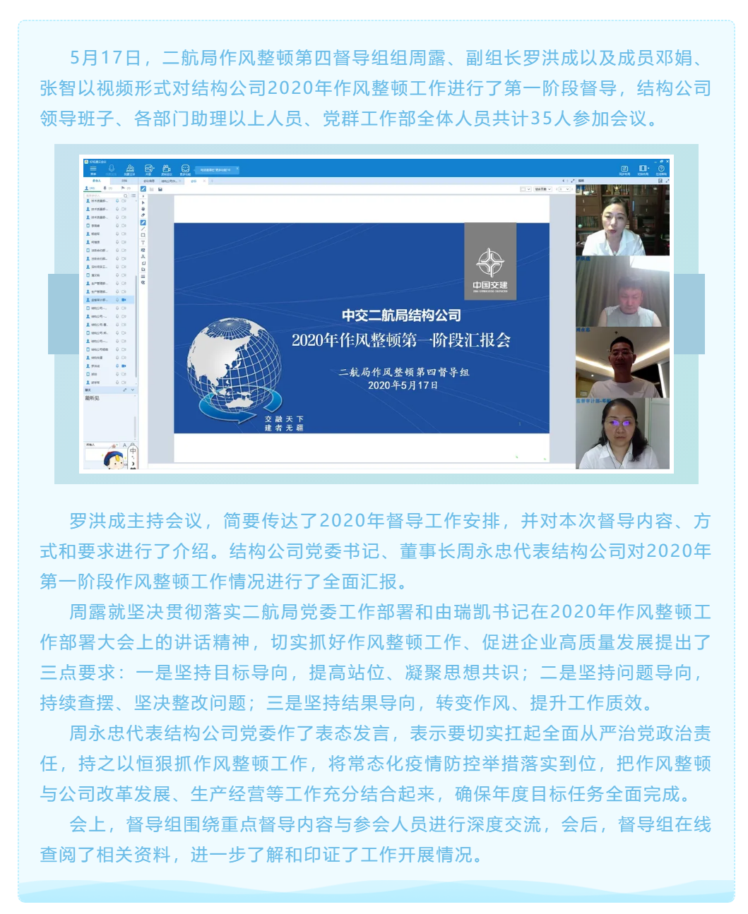 中交二航局作風(fēng)整頓第四督導(dǎo)組對(duì)結(jié)構(gòu)公司開展 2020年作風(fēng)整頓第一階段督導(dǎo)工作