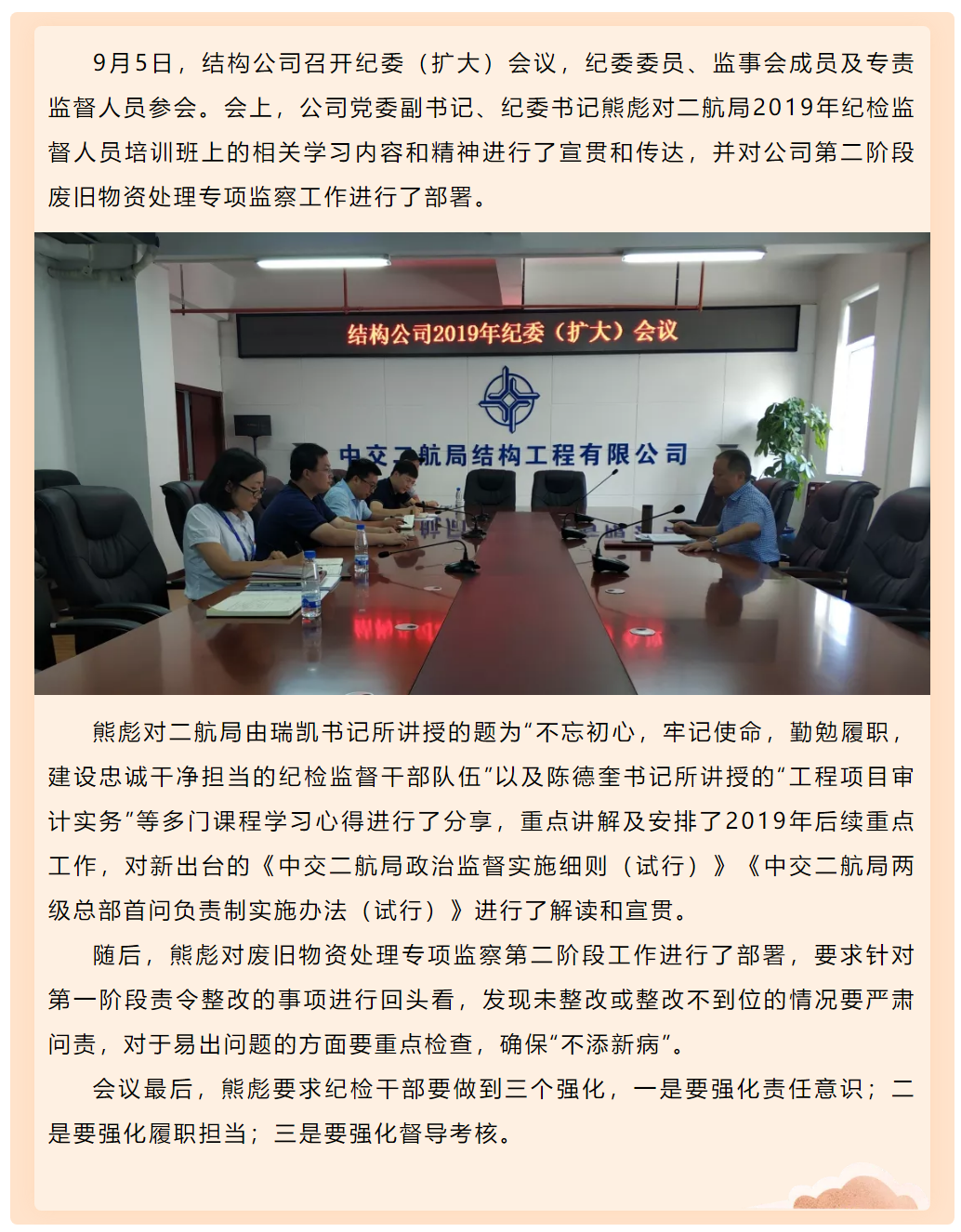 中交二航局結構公司紀委傳達學習二航局2019年紀檢監(jiān)督人員培訓班精神