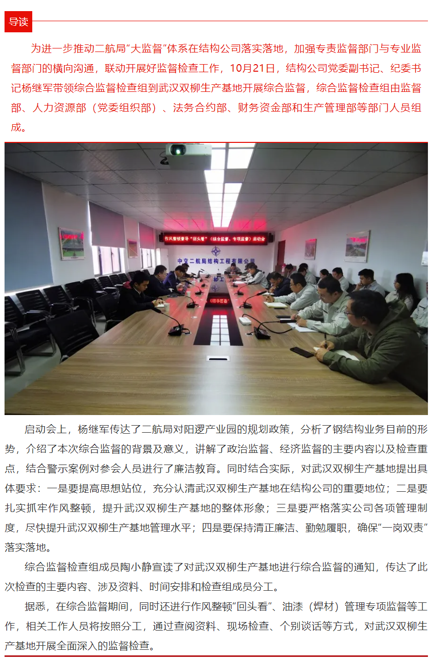 公司紀(jì)委對(duì)武漢雙柳生產(chǎn)基地開展綜合監(jiān)督