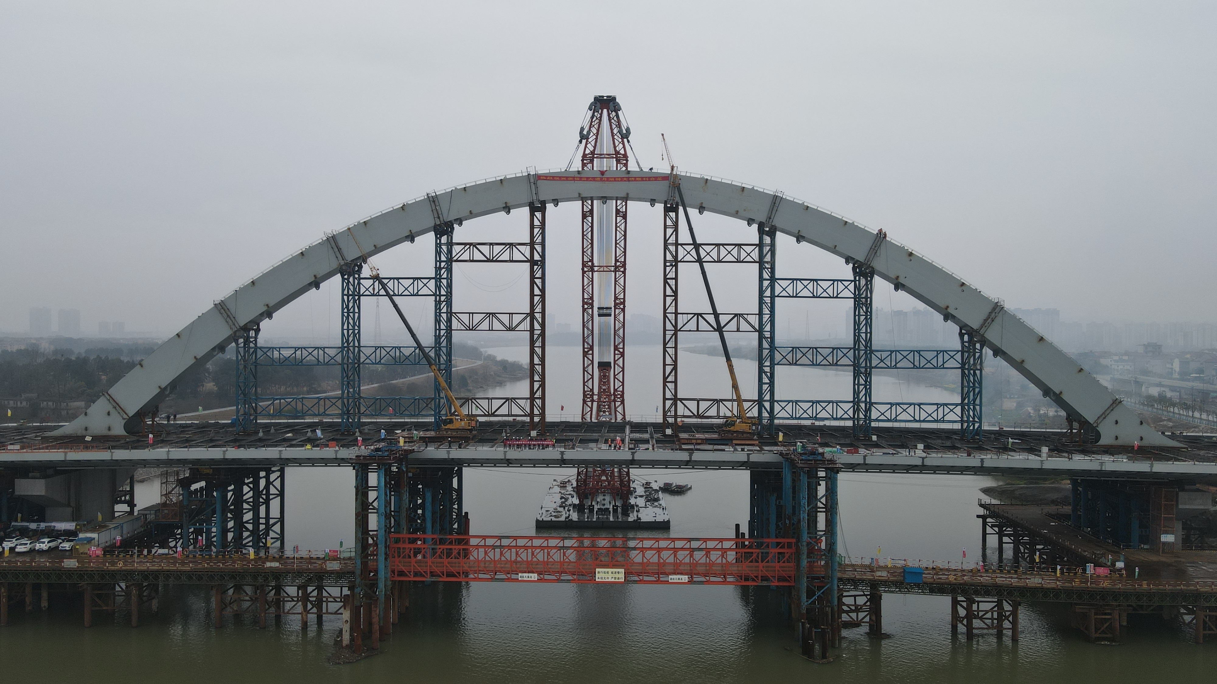 3月4日,公司參建的江西鷹潭余信貴大道月湖特大橋跨江主橋拱肋順利合龍。